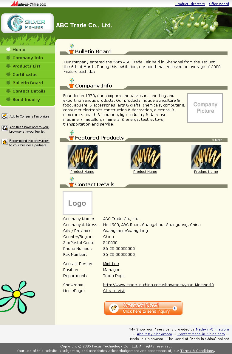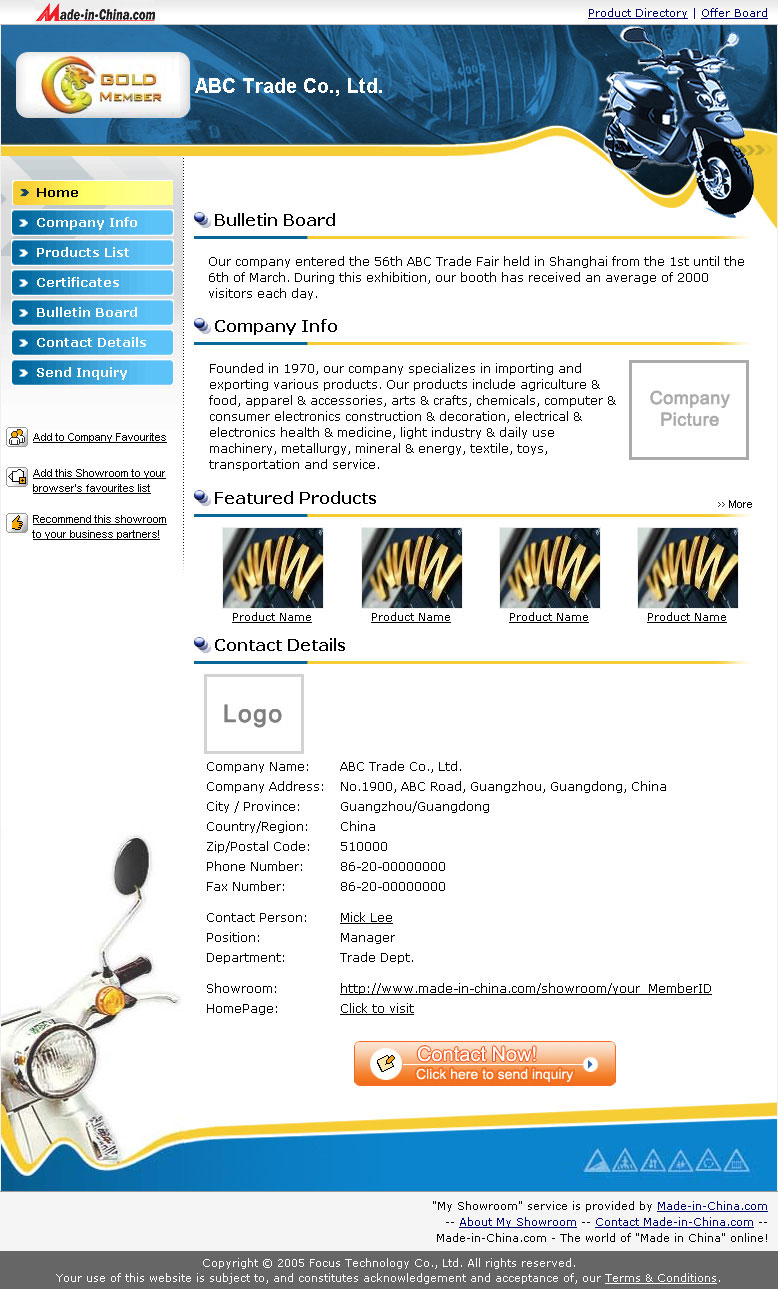 在"我的展示厅"中,公司介绍、产品信息、联系方法等可以在统一、协调的独立网页中进行展示。展示厅内的所有信息都会得到3V资源网专业编辑的审核,确保信息齐全,页面美观。